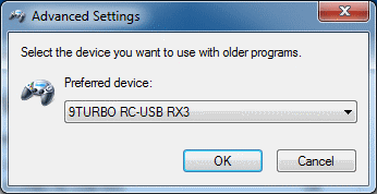![]() Preferred Device set to 9TURBO RC-USB RX3 then click "OK" button. |