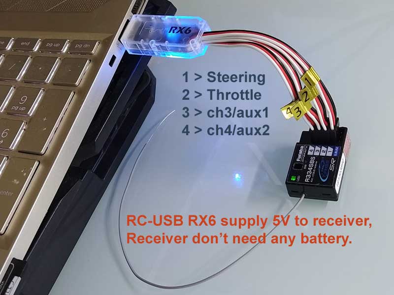 RC-USB RX6 must connect with receiver before plug it to USB port.
